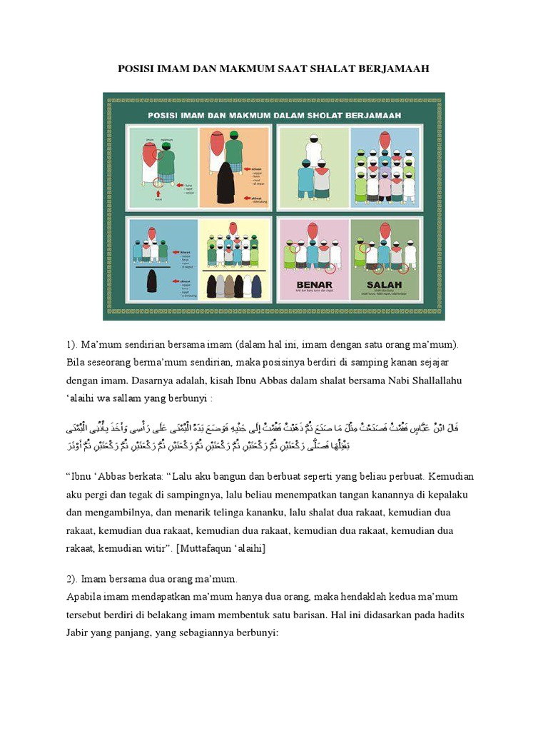 Kedudukan Imam Dan Makmum / Jika solat dalam keadaan berdiri, asas pengukur makmum mendahului.. Jika makmum cuma seorang, kedudukannya adalah di sebelah kanan imam. Ushalli fardhol 'ashri arba'a raka'aatim mustaqbilal qiblati. Pada saat imam salah baca ayat dalam shalat jamaah dianjurkan atau disunnahkan bagi makmum yang ada di belakang imam untuk membetulkan atau mengingatkan ayat tersebut. Posted by azuranawawi at saturday, december 10, 2011. Sumber kredit pekasam ustaz lah.
